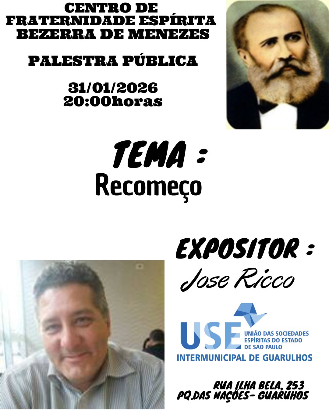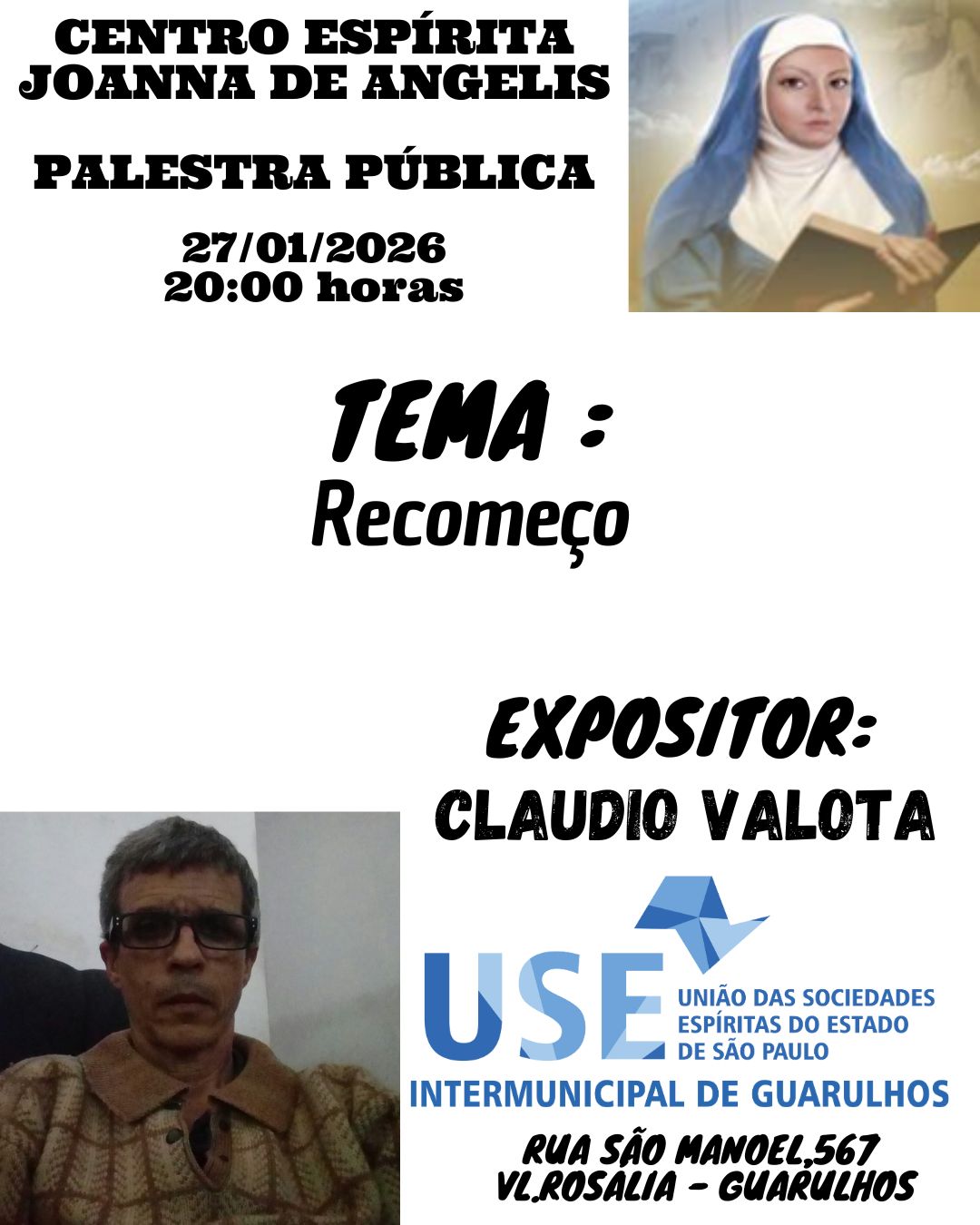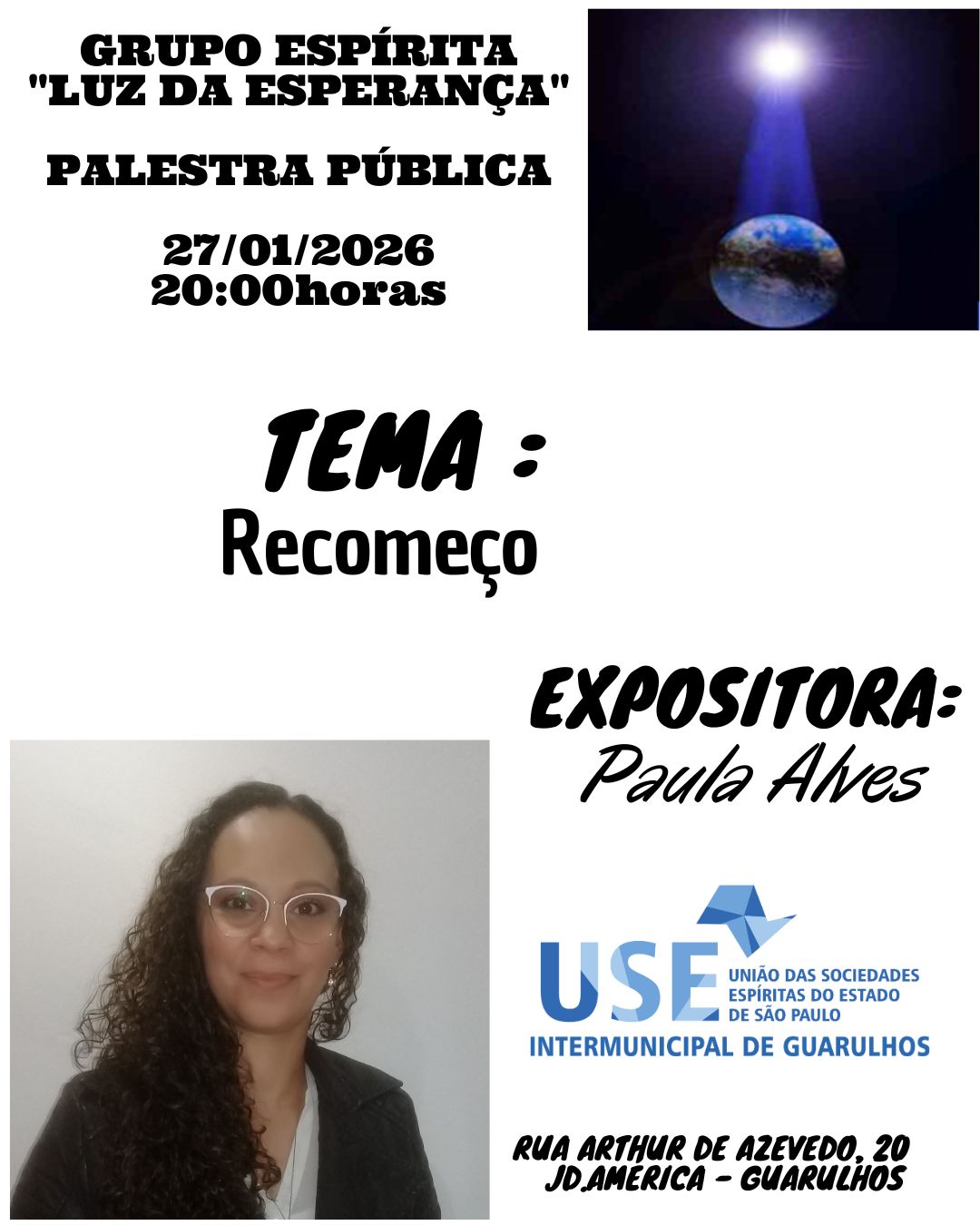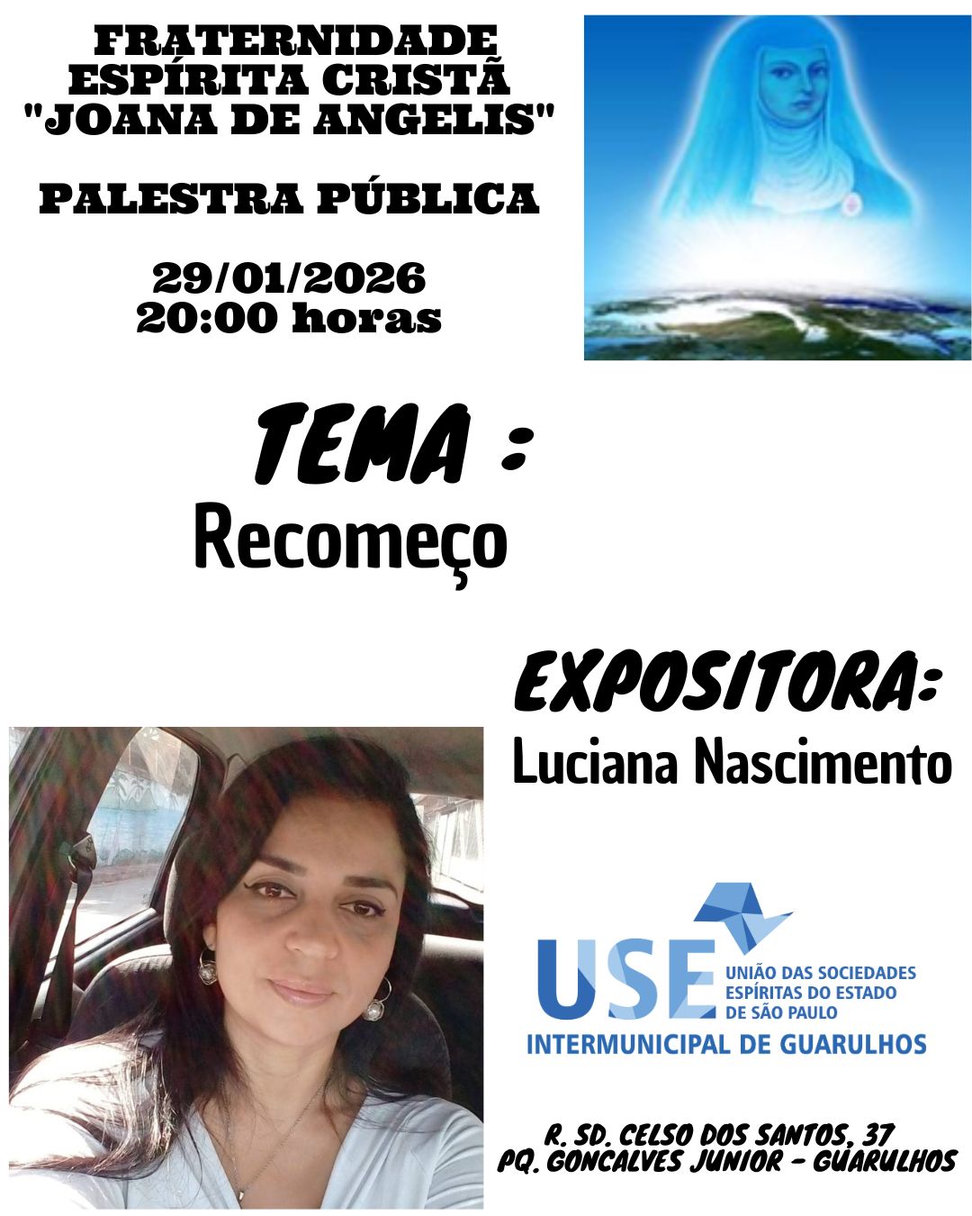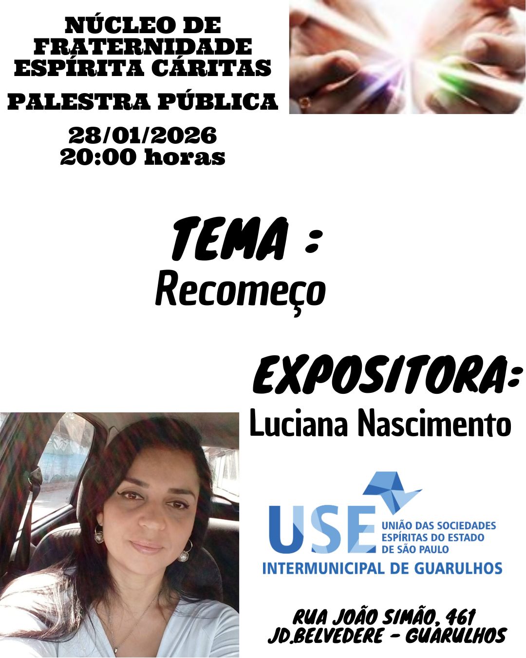 PALESTRAS DO MÊS DE JANEIRO DE 2026